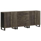 Buffets 3 pcs noir 60x33x75 cm bois massif de manguier