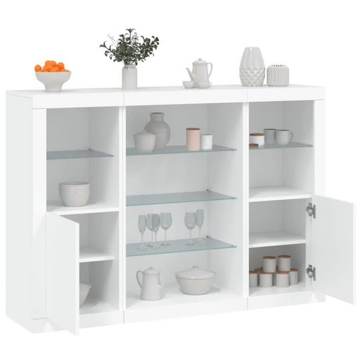Buffets avec lumieres LED 3 pcs blanc bois d'ingenierie