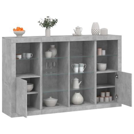Buffets avec lumieres LED 3 pcs gris beton bois d'ingenierie