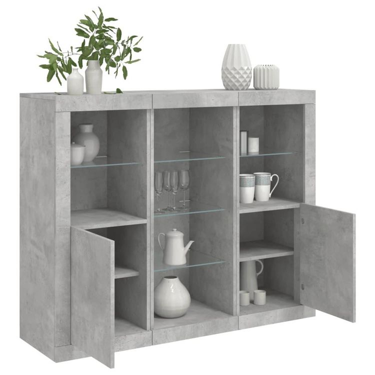Buffets avec lumieres LED 3 pcs gris beton bois d'ingenierie