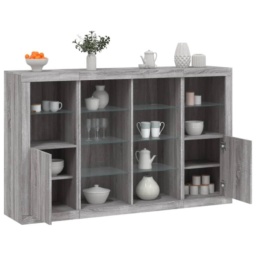 Buffets avec lumieres LED 3 pcs sonoma gris bois d'ingenierie
