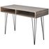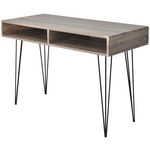 Dote d'un dessus en MDF de haute qualite et de pieds en metal massif, ce bureau est tres durable, stable et robuste. Le dessus de table spacieux offre un grand espace pour ranger votre ordinateur, ordinateur portable, lampe de table, etc. Ses deux compartiments sont parfaits pour ranger et garder a portee de main toutes sortes d'objets plus petits tels que des cles, des blocs-notes, des stylos et d'autres bibelots.