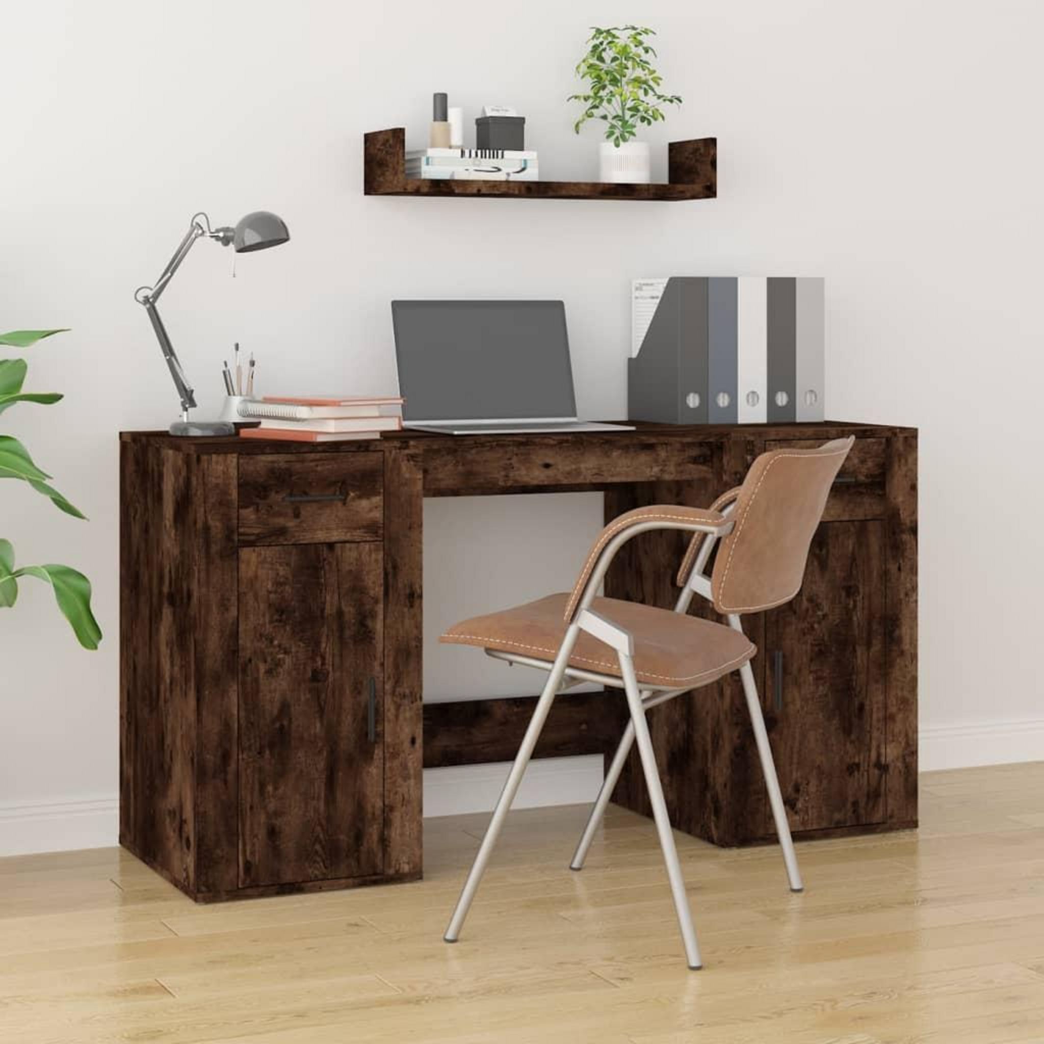 Bureau avec armoire chene fume bois d'ingenierie