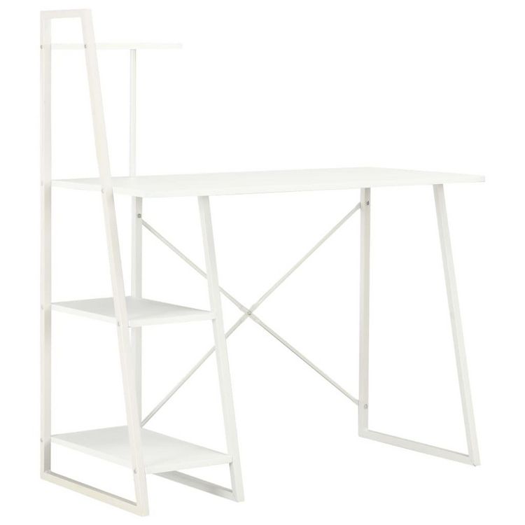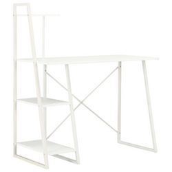 Ce bureau unique et elegant contient des etageres spacieuses et robustes. Le grand bureau est ideal pour placer votre ordinateur et vos accessoires, ce qui en fait un poste de travail ideal pour la paperasse, le travail de bureau et les etudes, tandis que les etageres integrees offrent un espace de stockage et d'affichage supplementaire pour vos livres, dossiers, documents ou cadres photo, objets decoratifs, plantes en pot, etc.