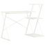 Ce bureau moderne est combine avec une etagere, ce qui en fait un meuble tres pratique et polyvalent pour une utilisation a la maison ou au bureau.