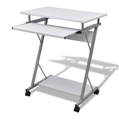 Bureau d'ordinateur compact avec plateau a clavier Blanc
