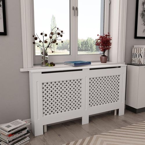 Ce cache-radiateur sera un supplement elegant et pratique a votre salon. Il est conçu pour donner a votre radiateur une fonction decorative et un espace additionnel pour les cadres photo, les livres, les ornements, etc. Fabrique en MDF de qualite, le cache-radiateur est robuste et durable. Il a un d