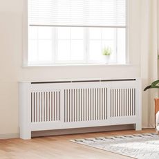 Ce cache-radiateur constituera un supplement elegant et pratique a votre salon. Ce cache-radiateur est en MDF, robuste et durable. Il presente un design a lattes moderne, ce qui le rend adapte a n'importe quel decor. L'etagere offre amplement d'espace pour placer vos livres, cadres photo, ornements,