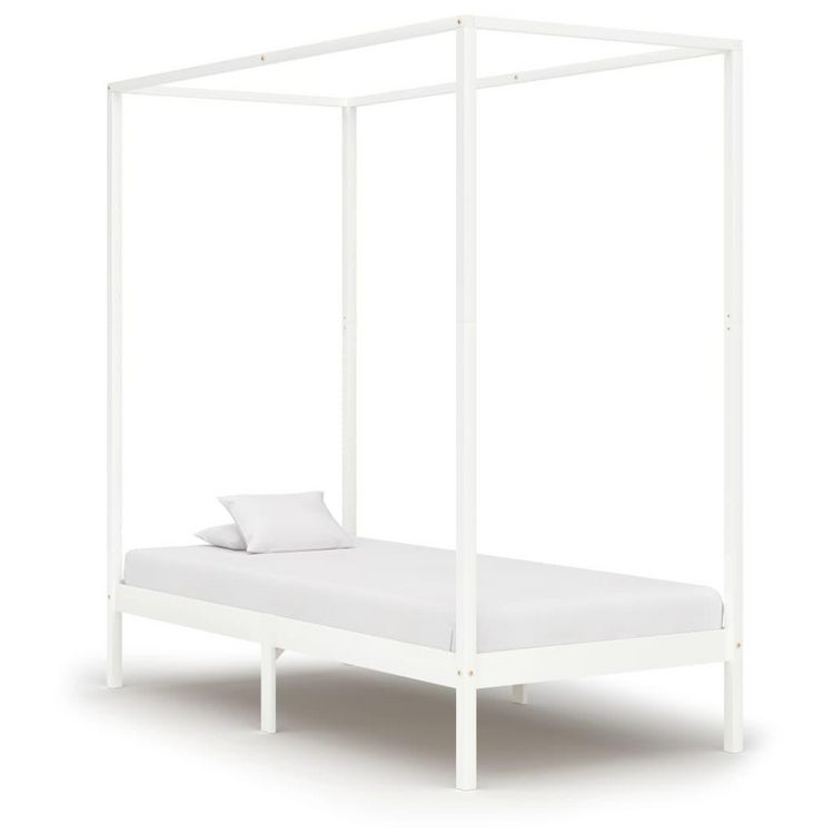 Cadre de lit a baldaquin Blanc Bois de pin massif 100x200 cm