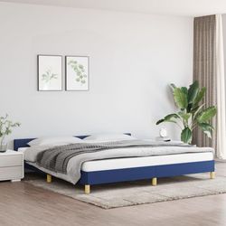 Cadre de lit avec tete de lit sans matelas bleu 200x200cm tissu