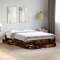 Cadre de lit avec tiroirs sans matelas chene fume 120x190 cm