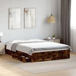 Cadre de lit avec tiroirs sans matelas chene fume 120x190 cm