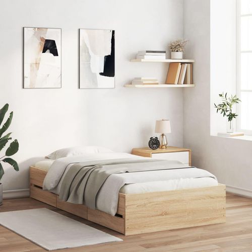 Cadre de lit avec tiroirs sans matelas chene sonoma 75x190 cm