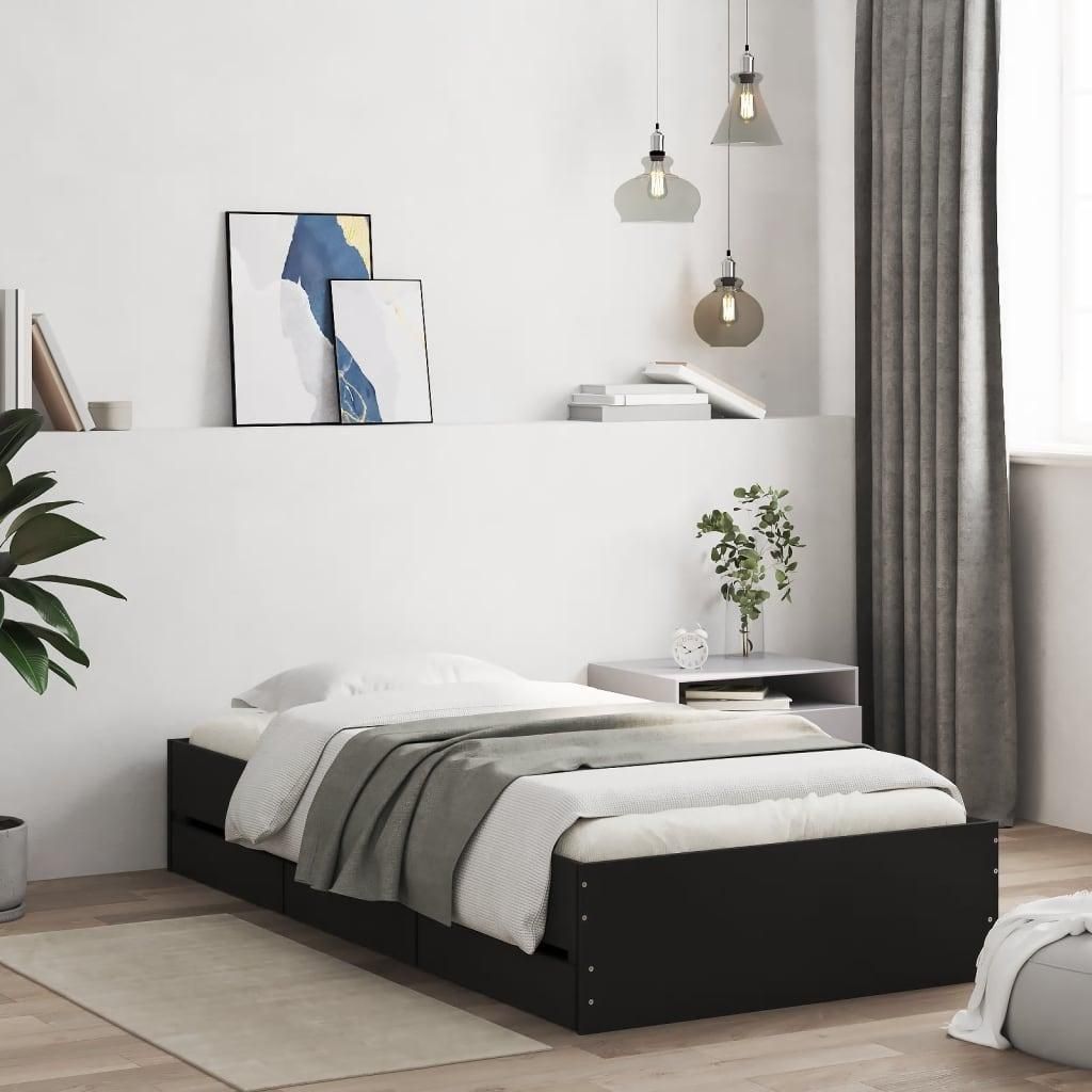 Cadre de lit avec tiroirs sans matelas noir 100x200 cm