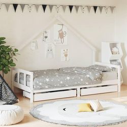 Cadre de lit enfant tiroirs blanc 90x200 cm bois de pin massif