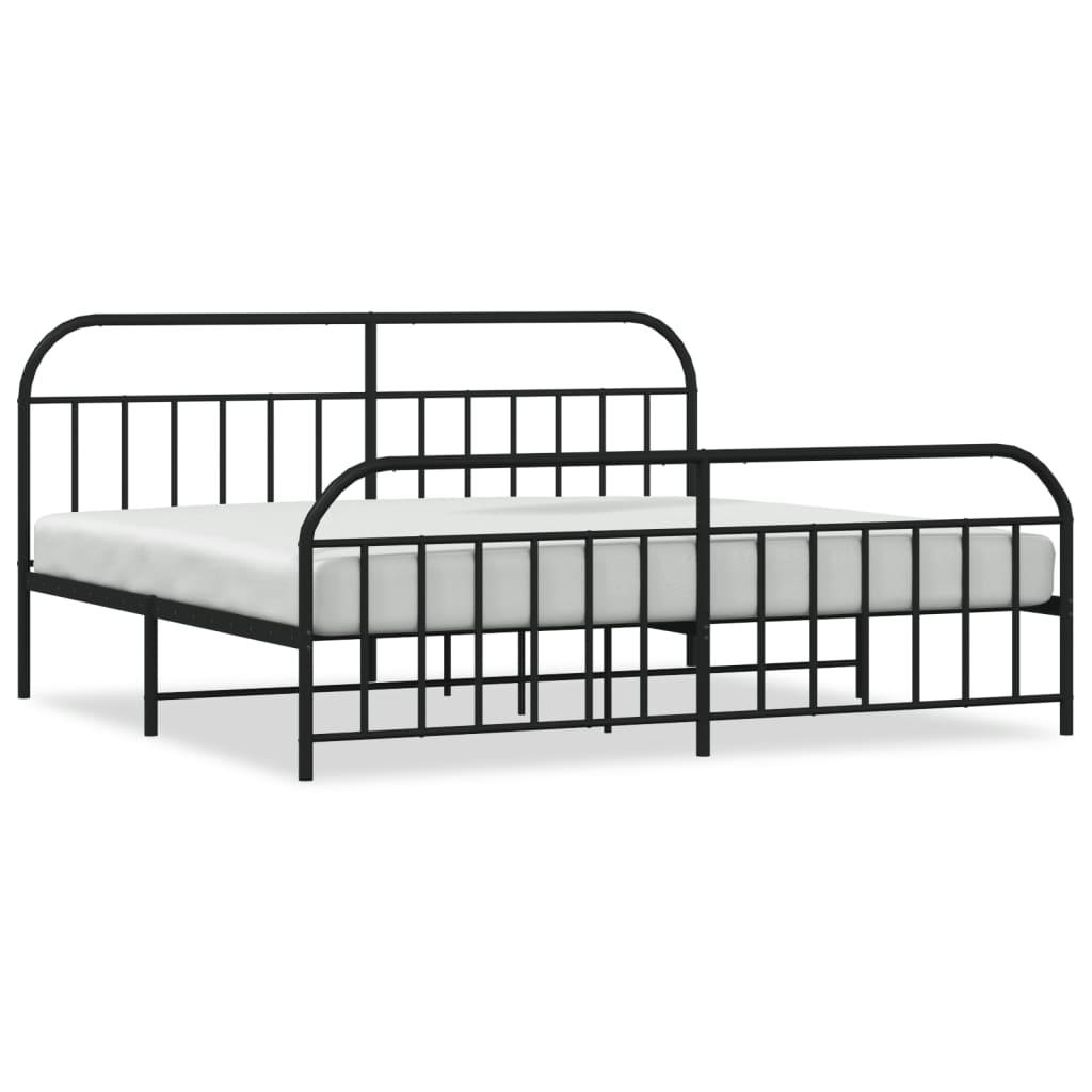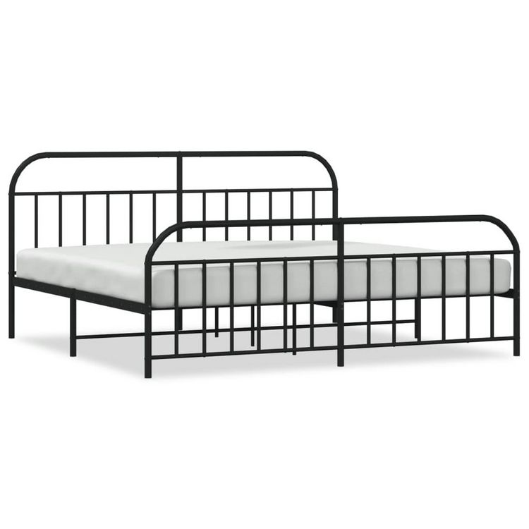 Cadre de lit metal sans matelas avec pied de lit noir 200x200cm