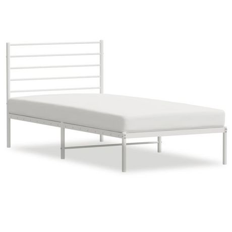 Cadre de lit metal sans matelas avec tete de lit blanc 75x190cm