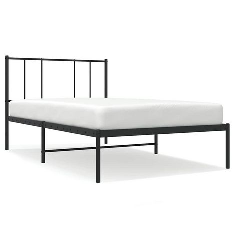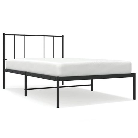 Cadre de lit metal sans matelas avec tete de lit noir 100x190cm
