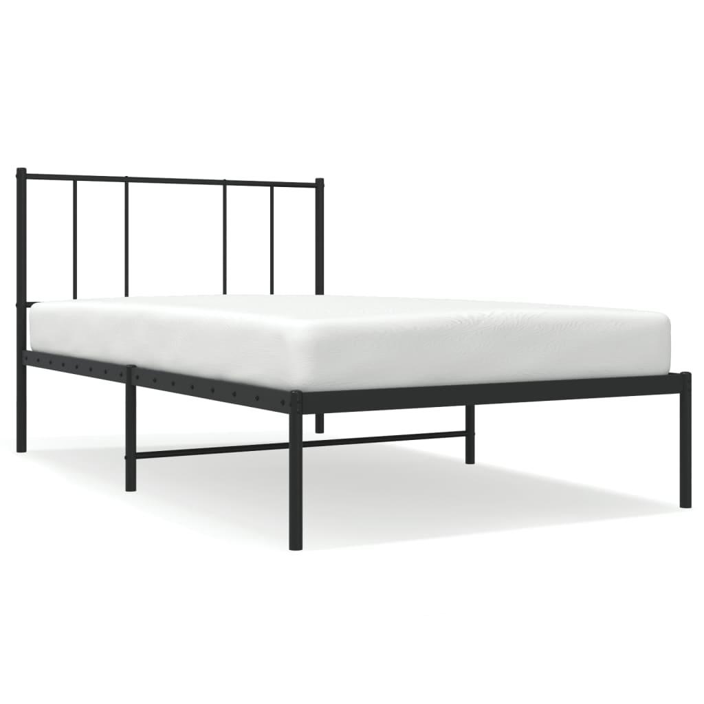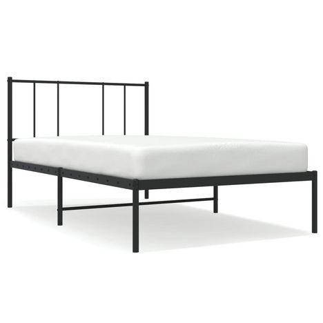 Cadre de lit metal sans matelas avec tete de lit noir 75x190 cm