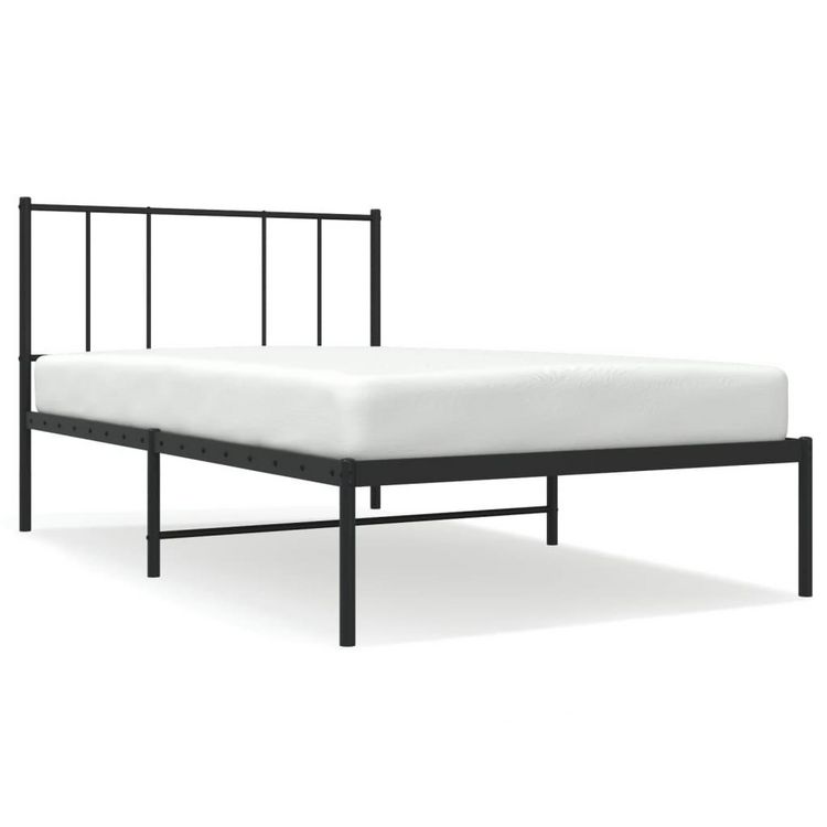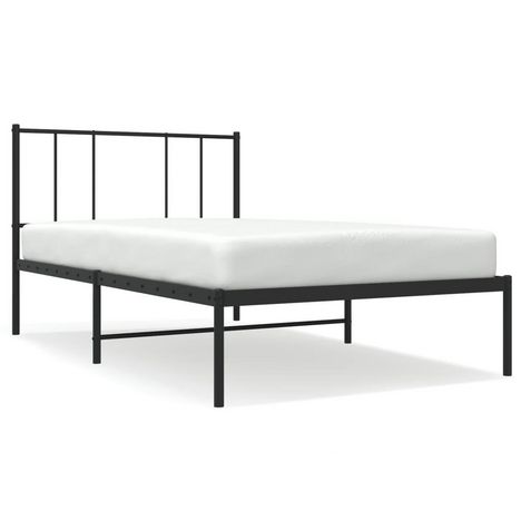 Cadre de lit metal sans matelas avec tete de lit noir 80x200 cm
