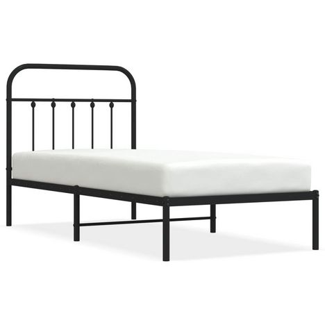 Cadre de lit metal sans matelas avec tete de lit noir 90x190 cm