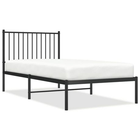 Cadre de lit metal sans matelas avec tete de lit noir 90x190 cm
