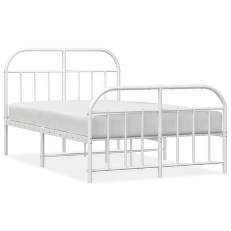 Cadre de lit metal sans matelas et pied de lit blanc 120x190 cm