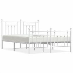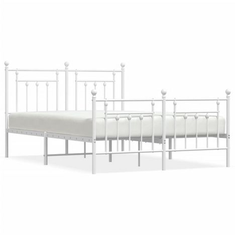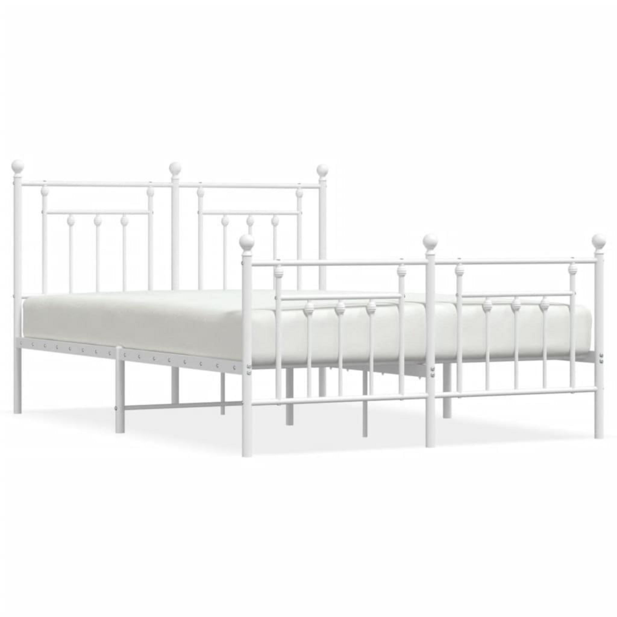 Cadre de lit metal sans matelas et pied de lit blanc 140x190 cm