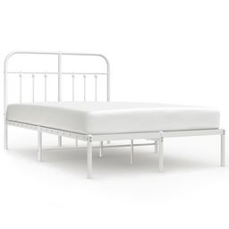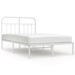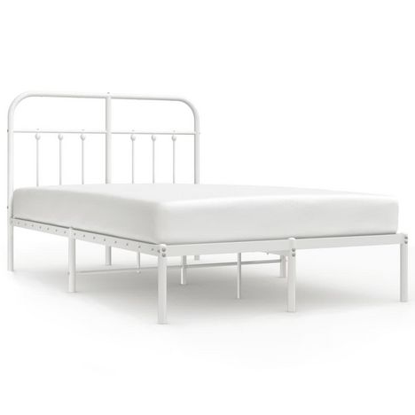 Cadre de lit metal sans matelas et tete de lit blanc 120x190 cm