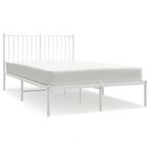 Cadre de lit metal sans matelas et tete de lit blanc 120x190 cm