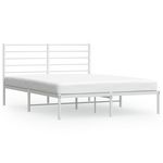 Cadre de lit metal sans matelas et tete de lit blanc 160x200 cm