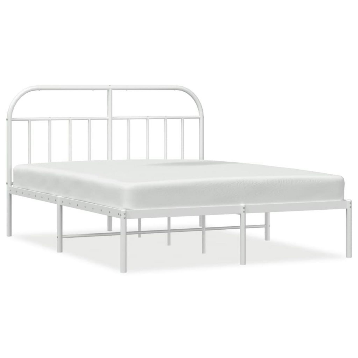 Cadre de lit metal sans matelas et tete de lit blanc 160x200 cm