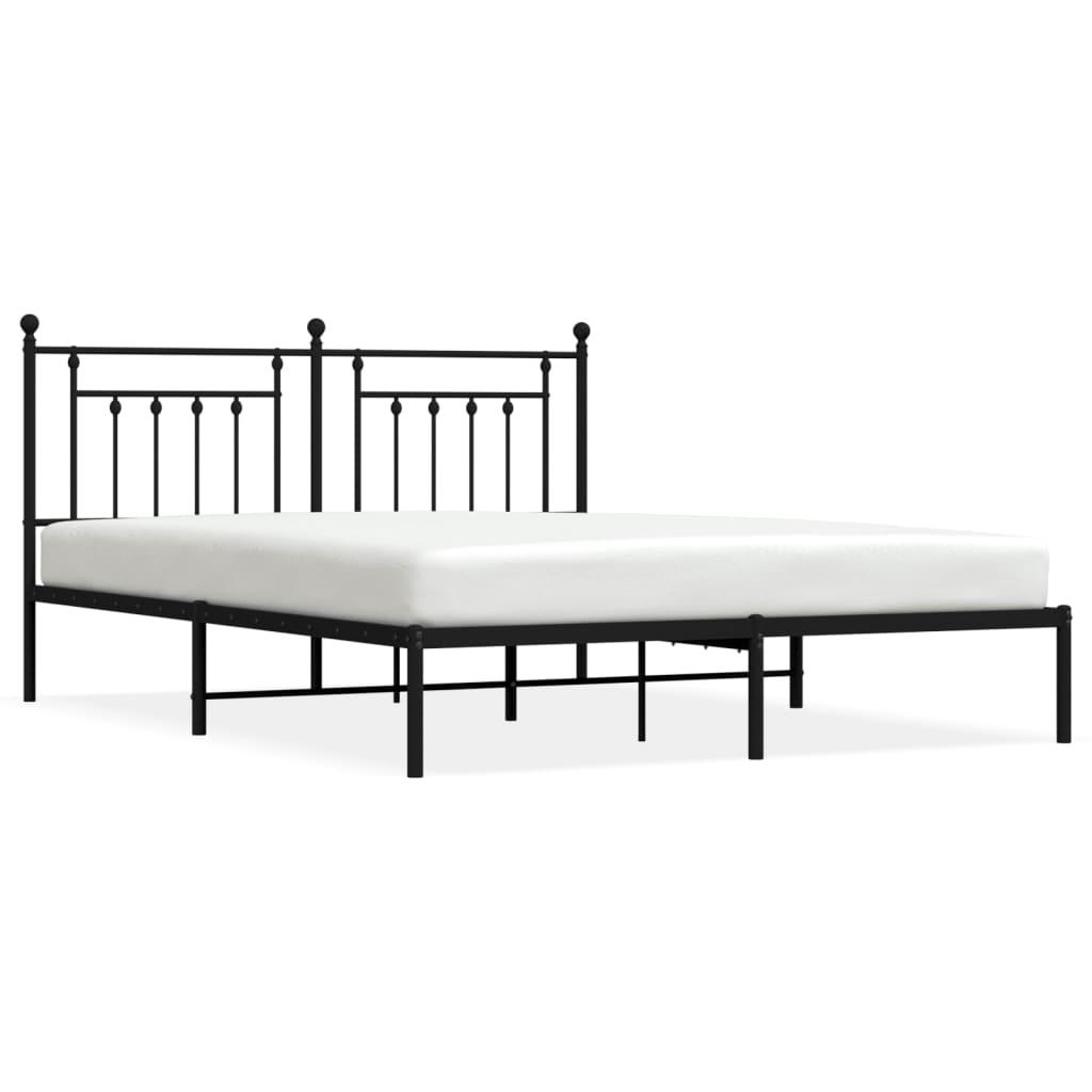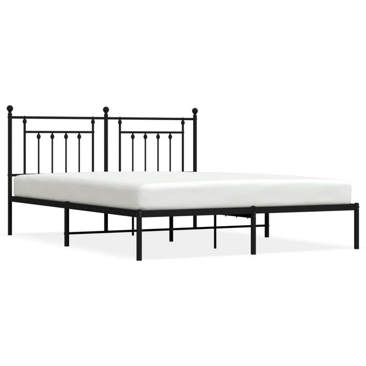 Cadre de lit metal sans matelas et tete de lit noir 160x200 cm