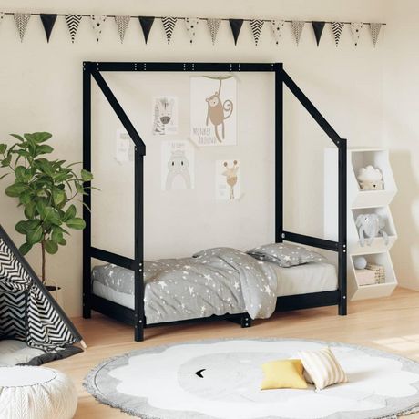 Cadre de lit pour enfant noir 70x140 cm bois de pin massif