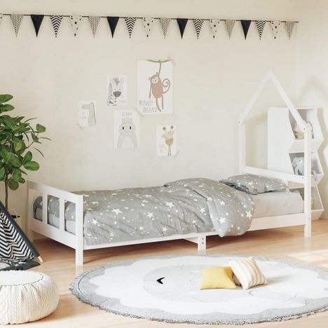 Cadre de lit pour enfants blanc 90x200 cm bois de pin massif