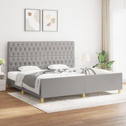 Cadre de lit sans matelas avec tete de lit gris clair tissu