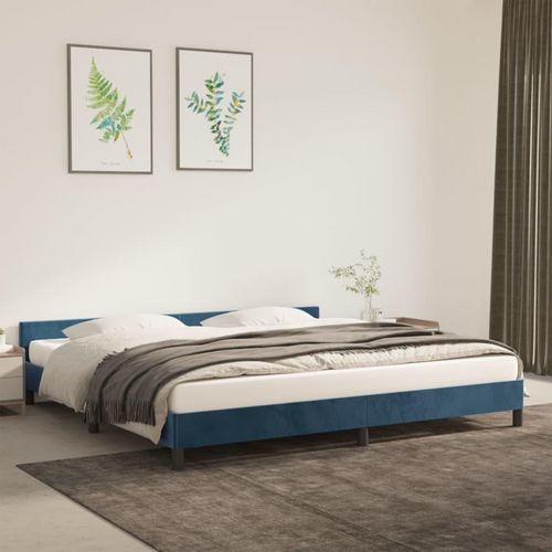 Cadre de lit sans matelas bleu fonce 200x200 cm velours