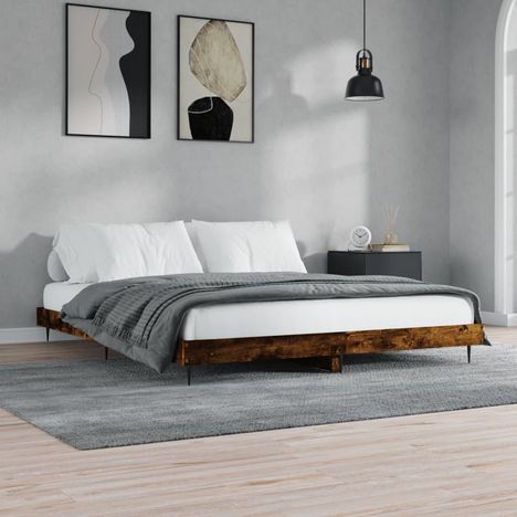 Cadre de lit sans matelas chene fume 200x200 cm bois ingenierie