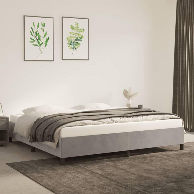 Cadre de lit sans matelas gris clair 200x200 cm velours