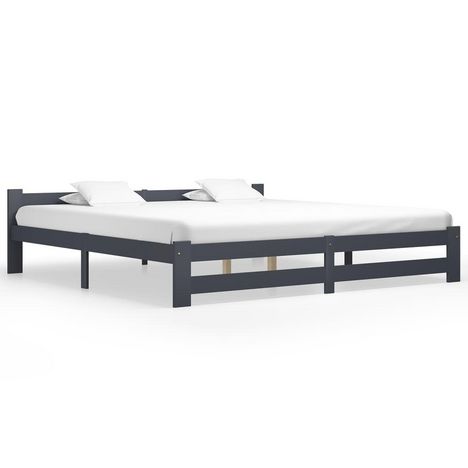Cadre de lit sans matelas gris fonce pin massif 200x200 cm