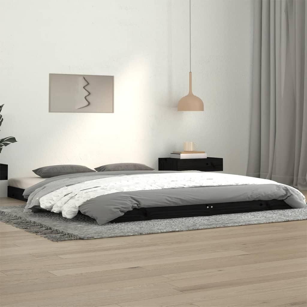 Cadre de lit sans matelas noir 140x190 cm bois de pin massif
