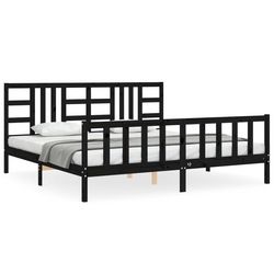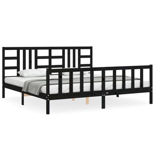 Cadre de lit sans matelas noir 200x200 cm bois massif de pin