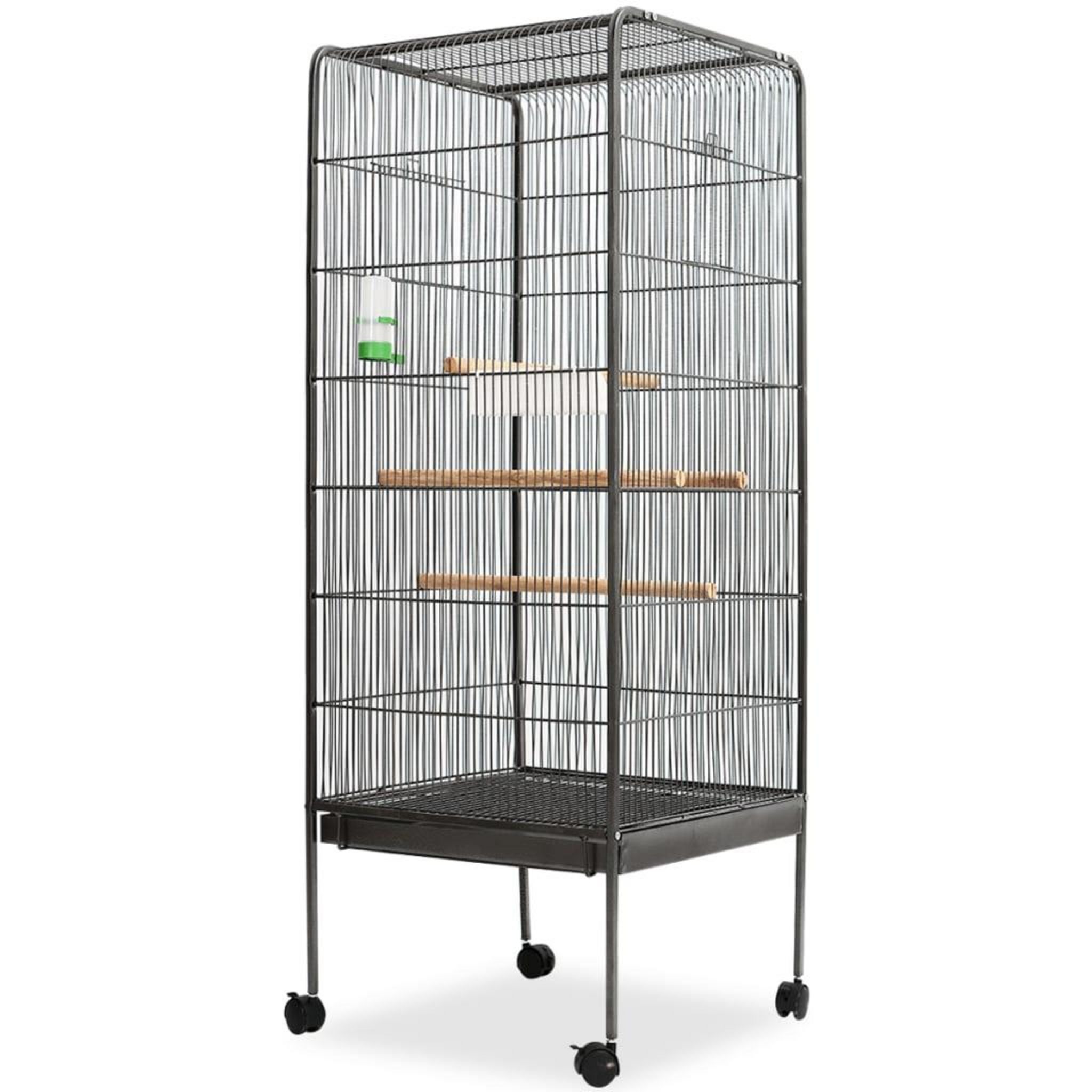 Cette cage a oiseaux solide et durable a un cadre en acier de haute qualite. Un bac coulissant au fond de la cage a oiseaux facilite le nettoyage. La cage est livree avec 1 bac de nourriture et 1 distributeur d'eau et dispose de quatre roulettes qui facilitent le deplacement de la cage.