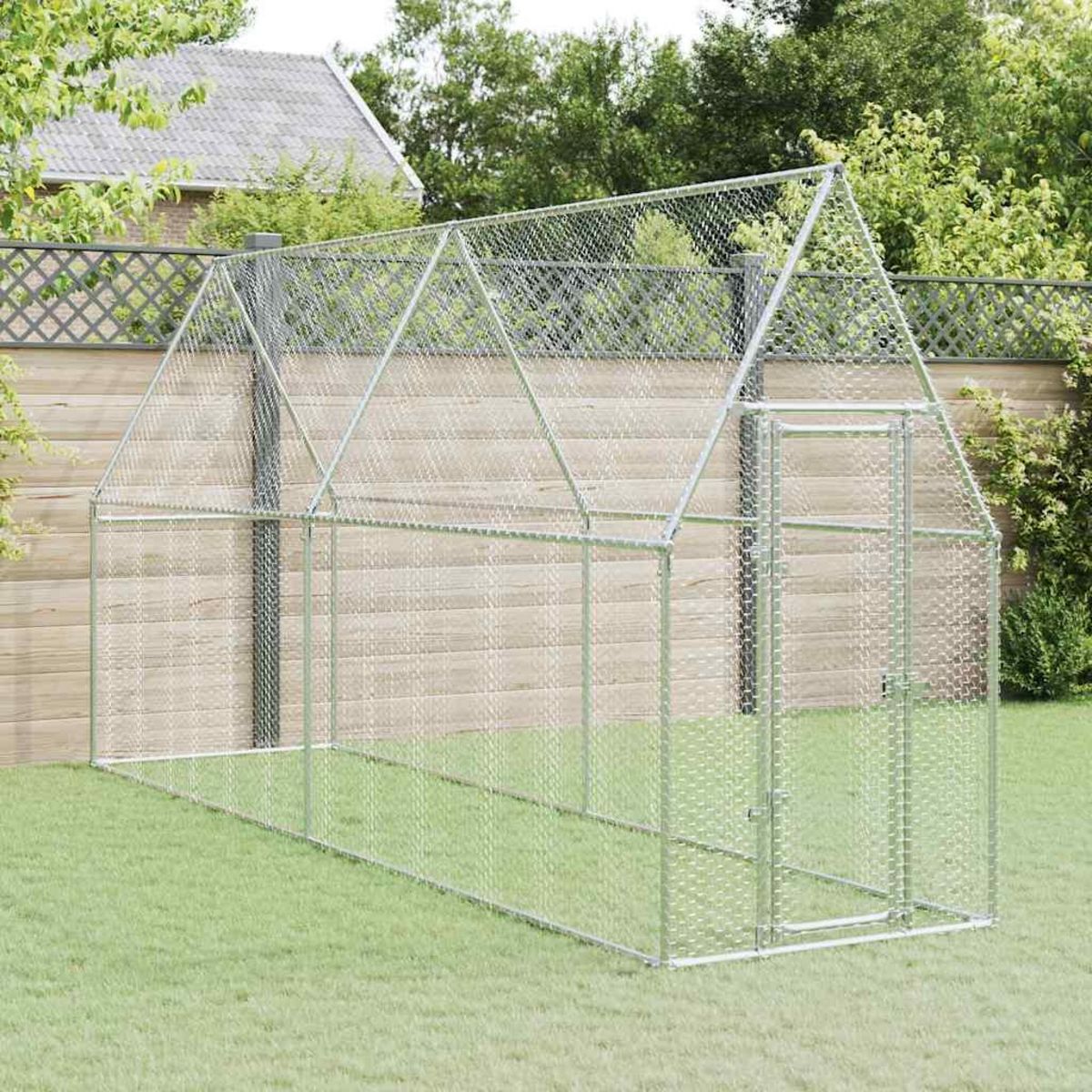 Cage pour poules argente 400x100x190 cm acier galvanise
