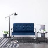 Canape 2 places avec accoudoirs Bleu Chrome et velours
