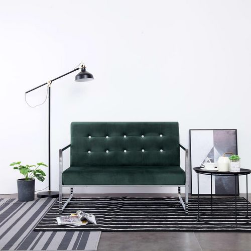 Canape 2 places avec accoudoirs Vert fonce Chrome et velours