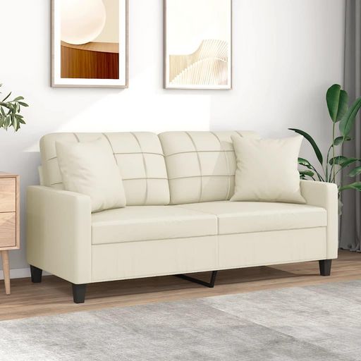 Canape 2 places avec oreillers creme 140 cm similicuir