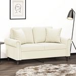 Canape 2 places avec oreillers decoratifs creme 120 cm velours