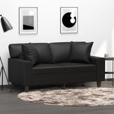 Canape 2 places avec oreillers decoratifs noir 120cm similicuir