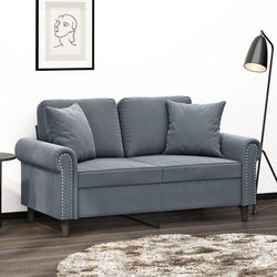 Canape 2 places avec oreillers gris fonce 120 cm velours